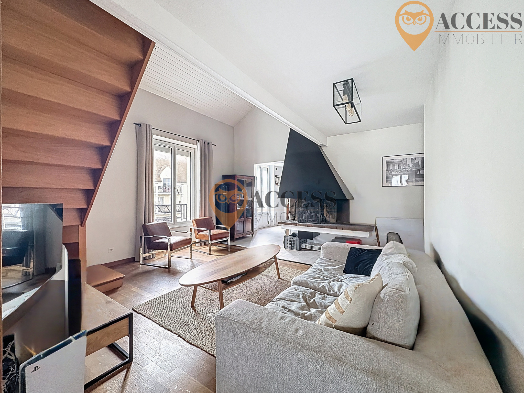 L'agence ACCESS Immobilier vous propose à la location Meublée ce duplex de plus de 75m2 situé en plein centre ville. Situé au 1er étage, cet appartement vous offrira une entrée sur cuisine équipée, séjour double avec cheminée de plus de 33m2, une chambre de plus de 13m2, salle d'eau et wc avec lave mains. Au 1er étage : vous découvrirez une chambre mansardée avec coin rangements et salle de bains avec WC. Chauffage individuel Electrique. Loyer mensuel de 1260,00€ dont 100,00€ de charges. Contactez notre agence au 01 39 83 30 30 ou par mail à contact@access-immo95.fr pour déposer votre dossier.