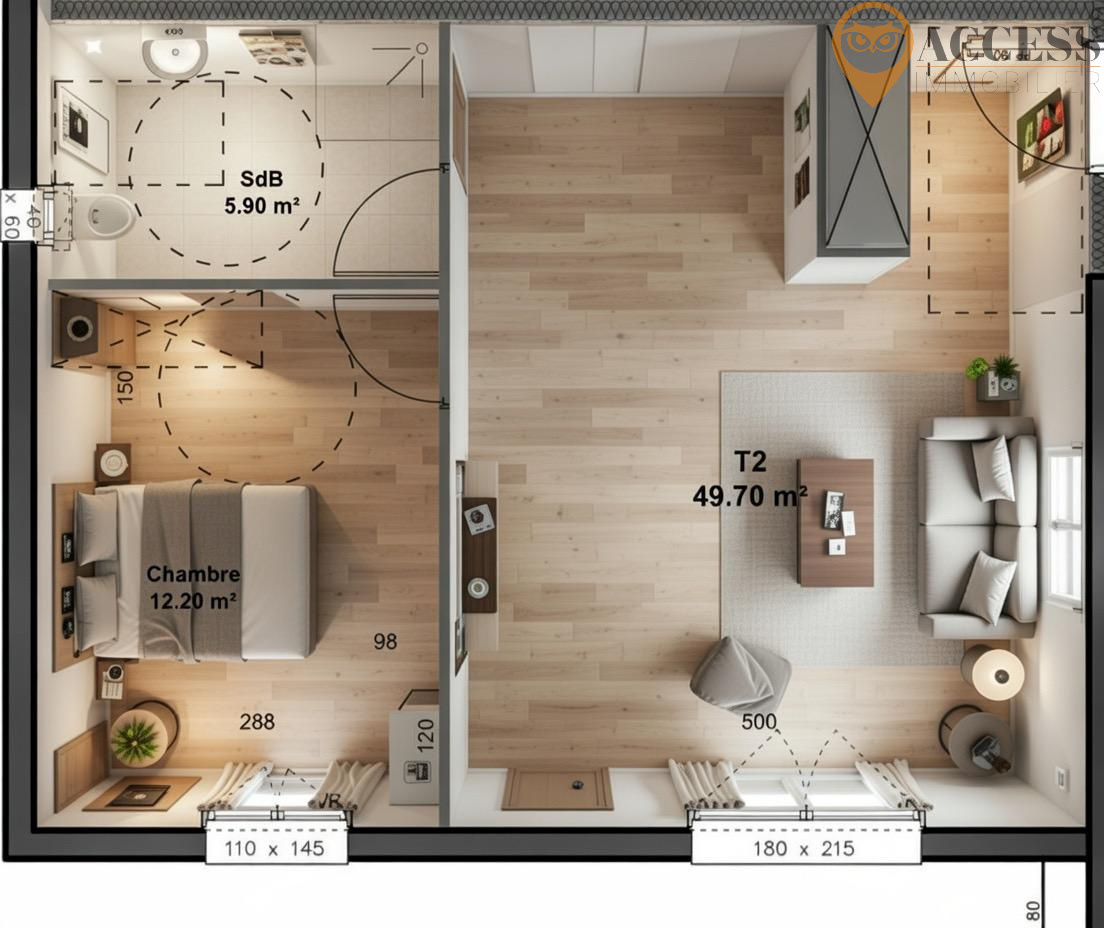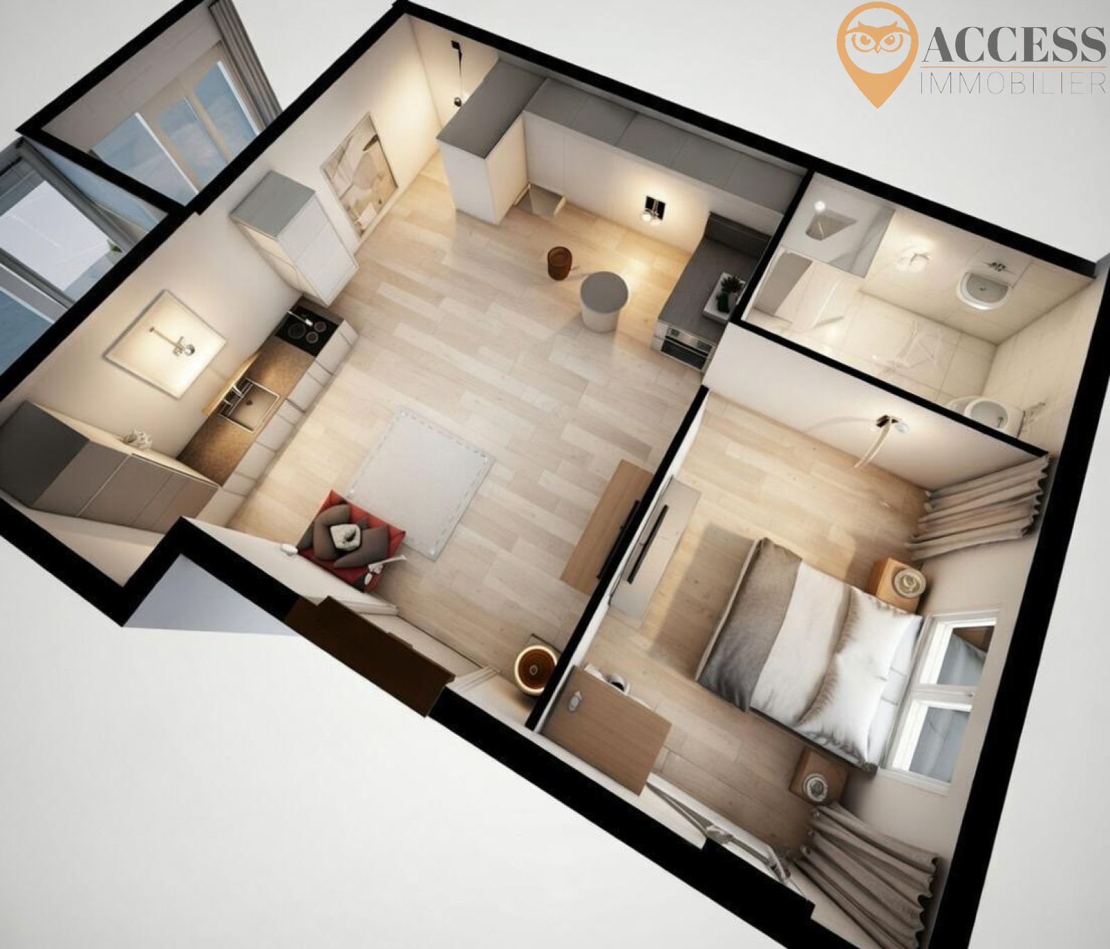 Dans la résidence "Les Azalées" sécurisée et moderne de 13 logements, l'agence ACCESS Immobilier vous propose en EXCLUSIVITE cet appartement avec ascenseur de 2 pièces situé au 3ème et dernier étage comprenant : entrée, séjour de 23,97m2 avec sa cuisine US, une chambre de 10,47m2 et une salle d'eau avec wc. Cet appartement de 46,61m2 vous offrira également une place de parking intérieure. Exposition Nord. Chauffage individuel électrique. Disponibilité fin 2026. Contactez notre agence au 01 39 83 30 30 ou par mail à contact@access-immo95.fr
