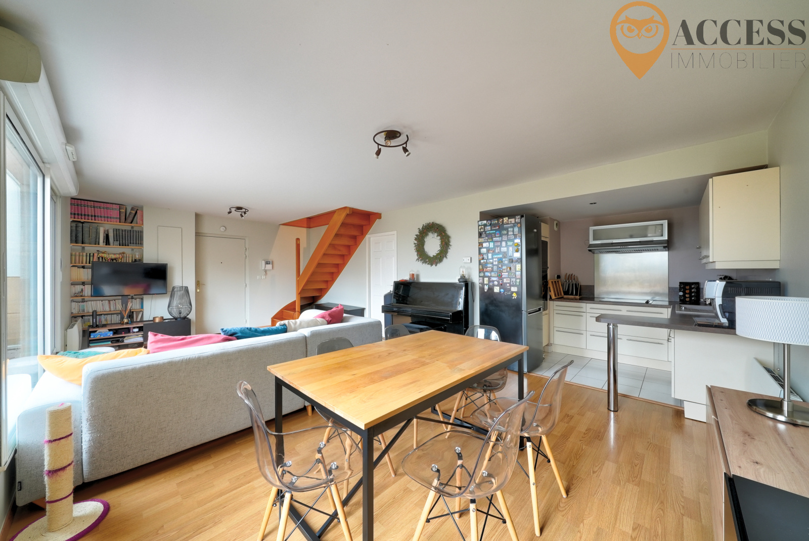 L'agence ACCESS Immobilier vous propose ce magnifique duplex de plus de 80m2, dans une copropriété fermée de 2008, proche des commodités. Au 2ème étage, il vous offrira sur un premier niveau : entrée sur pièce de vie de plus de 30m2 donnant sur une terrasse de 14m2 avec une belle vue dégagée sur les jardins de la copropriétiée, cuisine ouverte entièrement équipée, cellier et wc. Au second niveau : dégagement desservant trois belles chambres dont une avec un dressing, salle d'eau et wc séparé. Vous disposerez également d'une cave et d'une place de parking intérieur. Ne passez pas à côté de ce duplex en très bon état ! Contactez notre agence au 01 39 83 30 30 ou par mail à contact@access-immo95.fr