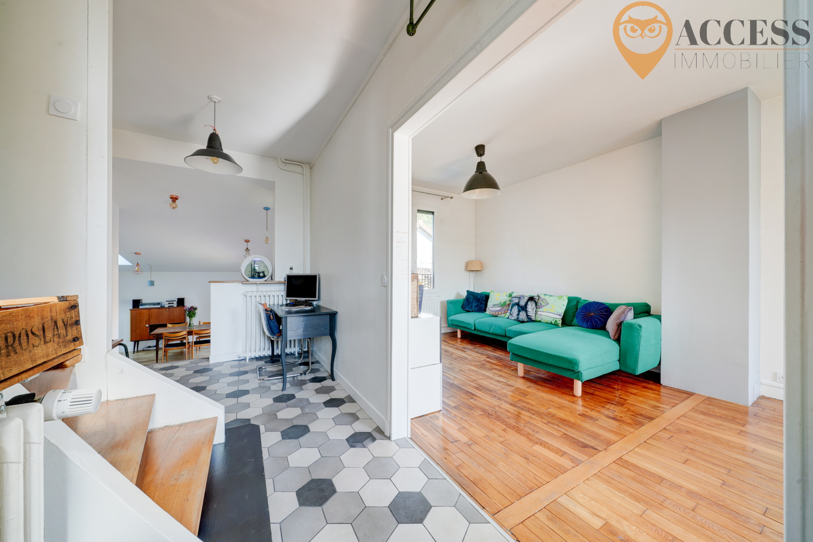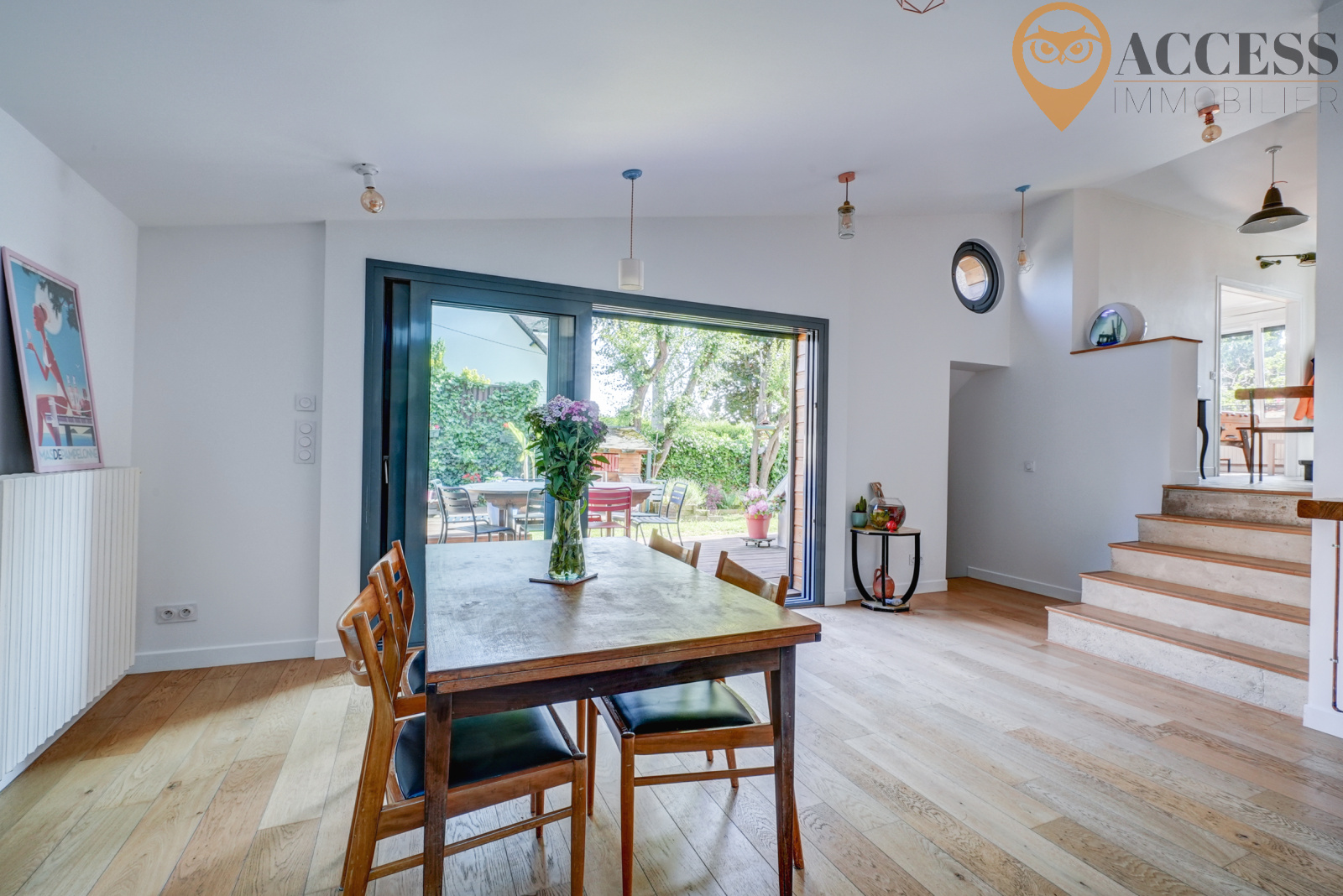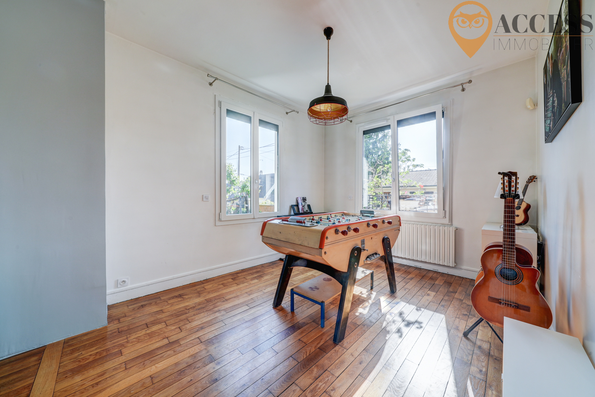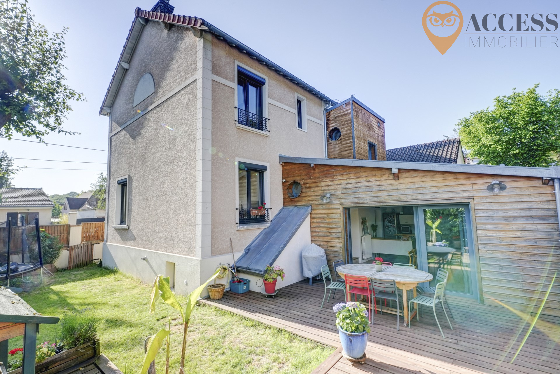 L'agence ACCESS Immobilier vous propose cette charmante maison de 123m2, dans un secteur très agréable et pavillonaire de Groslay. Cette maison édifiée sur une jolie parcelle de 227m2 avec son jardin et sa terrasse en bois exposés sud/ouest, vous offrira un premier niveau : entrée donnant sur un séjour de plus de 23m2, wc avec lave mains, une charmante salle à manger avec sa cuisine us de plus de 29m2 donnant sur la terrasse et le jardin, garage attenant et accès à la cave. Au demi-niveau : une chambre parentale avec placard et salle d'eau avec wc. Au second niveau : palier desservant 2 chambres de plus de 11m2 et salle de bains. Au dernier niveau, vous découvrirez une pièce de jeux où vous pourrez y créer une dernière chambre. Venez découvrir cette charmante maison rénovée avec goût et avec de belles prestations ! Chauffage gaz. Contactez notre agence au 01 39 83 30 30 ou par mail contact@access-immo95.fr