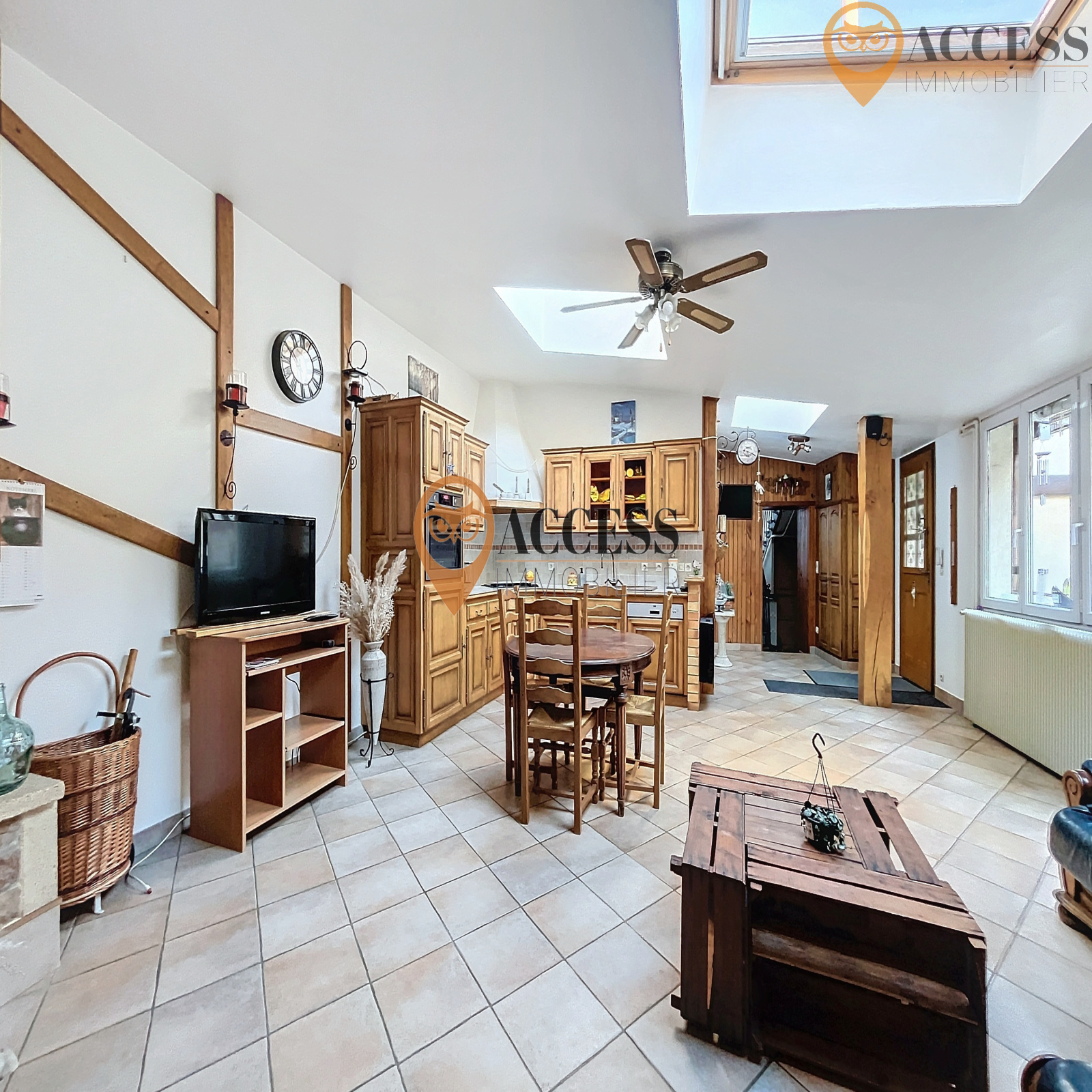 L'agence ACCESS Immobilier vous présente cette jolie maison de ville sur deux niveaux et d'environ 120m2. Accessible par un porche et donnant sur une charmante cour en pavé, vous découvrirez sur un premier niveau : une entrée avec placard, un séjour lumineux de plus de 32m2 avec sa cuisine US et sa cheminée, une salle d'eau avec wc, un espace bureau et buanderie. Au second niveau, vous découvrirez un palier lumineux desservant 2 chambres avec placards, une salle d'eau avec wc et une chambre parentale avec un coin sous les toits pour y créer un espace indépendant ! Le tout édifié sur une parcelle de 229m2 avec un stationnement privé et un beau garage avec mezzanine. Chauffage gaz. Venez découvrir cette maison de ville lumineuse et atypique où vous pourrez repenser les espaces pour y créer votre univers. Contactez notre agence au 01 39 83 30 30 ou par mail à contact@access-immo95.fr