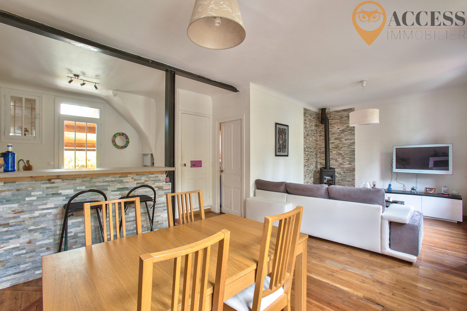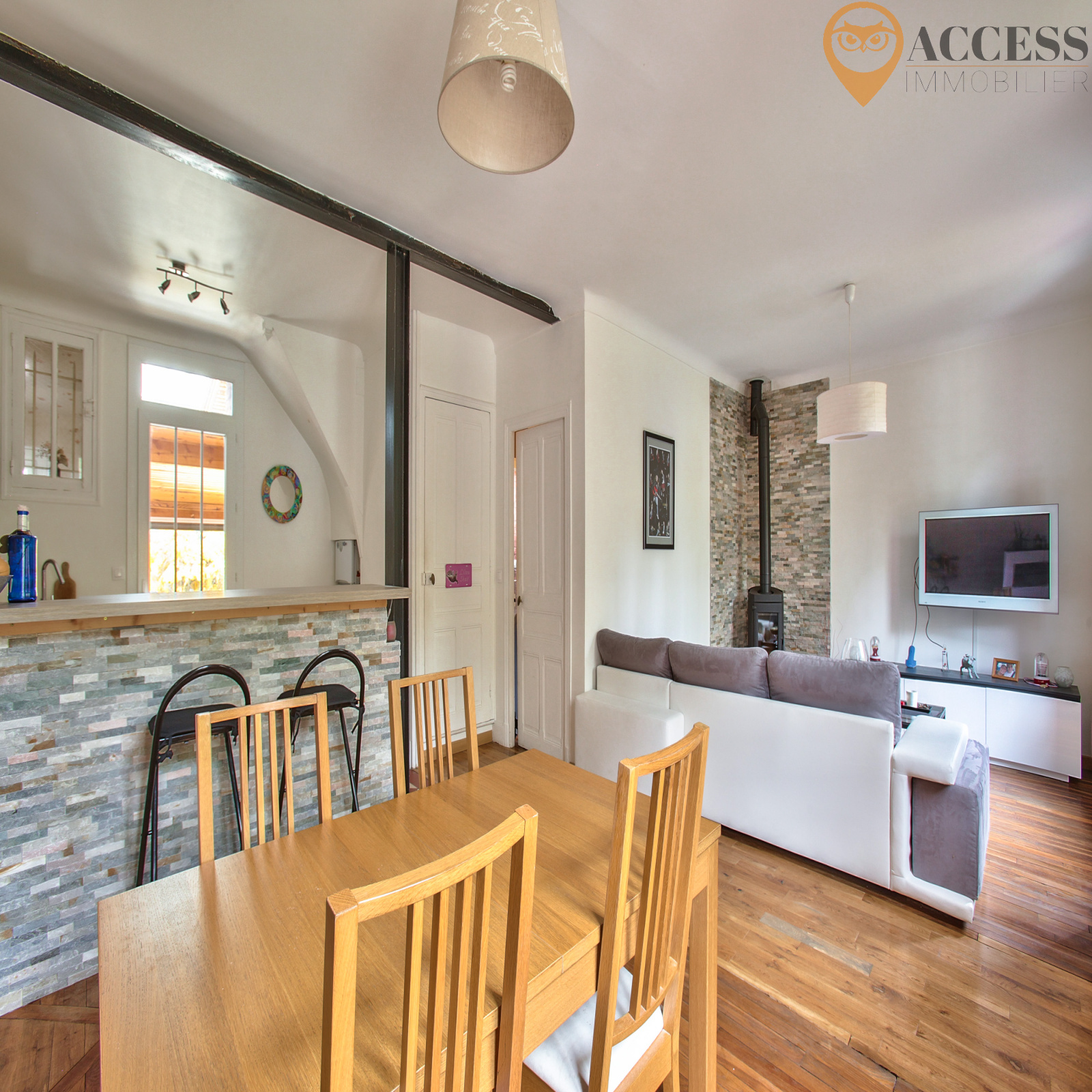 Cette belle meulière des années 30, de plus de 95m2, vous offrira au rdc: entrée sur un double séjour, cuisine us entièrement équipée, chambre, salle d'eau, palier et wc avec lave mains. Sur un second niveau vous y trouverez : véranda, bureau, atelier et buanderie. Au premier étage: Palier avec placard, chambre de plus de 27m2 au sol ( possibilité 2 chambres), salle de bains avec wc et placard. Cette maison vous offrira également un garage et dépendance. Le tout édifié sur un terrain de 439m2 exposé plein sud. Chauffage fioul. Venez découvrir cette maison dans un EXCELLENT ETAT en contactant Alexandre Quéré au 06.01.15.33.37/ contact@access-immo95.fr