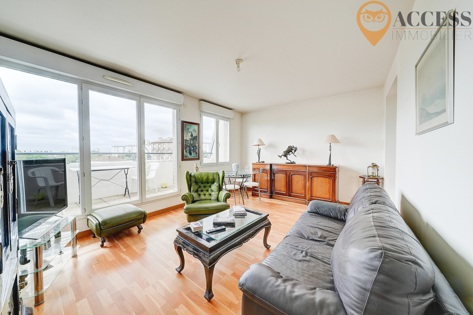 L'agence ACCESS Immobilier vous propose cet appartement situé dans une copropriété sécurisée, proche de la gare et des commodités. Au 5ème et dernier étage, il vous offrira : entrée, séjour de plus de 19m2 avec accès terrasse, cuisine équipée séparée, une chambre avec placard de plus de 12m2, une seconde chambre avec accès terrasse également et placard, salle d'eau et WC séparé. Vous disposerez également d'une place de parking en sous-sol. Chauffage individuel électrique. Charges 128€/mois (eau froide, ascenseur, syndic, entretien parties communes, assurance). Contactez notre agence au 01 39 83 30 30 ou par mail à contact@access-immo95.fr